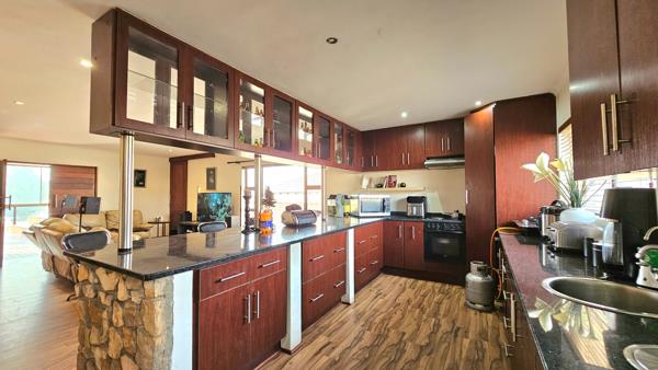 Step into a lifestyle of elegance and relaxation in this stunning home nestled within Kungwini Manor, a secure enclave inside the sought-after Kungwini Country Estate at Bronkhorstbaai. Designed for both entertaining and family living, this residence boasts a braai room with a jacuzzi and a wooden deck that frames uninterrupted dam views through expansive sliding windows. The heart of the home is the open-plan living area where a granite-topped kitchen with prep bowl, gas stove, oven, and extractor fan flows into the lounge and TV room. Added features such as a scullery, guest toilet, under-stair storage, and a double garage with generator switch-over ensure comfort and practicality, while a downstairs study or additional bedroom provides versatility.