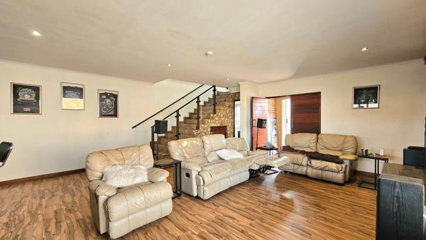 Upstairs, sophistication continues with a spacious pajama lounge centered around a cozy fireplace, opening onto a balcony with sweeping water views. The main bedroom offers a private balcony, a luxurious full en-suite bathroom with double basins, bath, and shower, plus ample built-in cupboards. Two additional bedrooms with fitted cupboards share a bathroom featuring a corner bath and shower. Modern conveniences include fibre connectivity, an alarm system, and extra storage that doubles as an additional garage. With its perfect blend of style, function, and breathtaking views over the Bronkhorstspruit Dam, this property offers an exceptional opportunity to own a prestigious address inside Kungwini Manor. Kungwini Country Estate