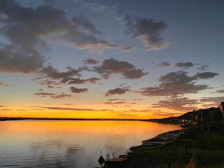 The open-plan living, dining, and kitchen area includes wooden cupboards and a built-in braai, with sliding doors that open onto a patio overlooking the water. Its a great spot to enjoy quiet mornings and beautiful sunrises or unwind in the evening with sunset views.