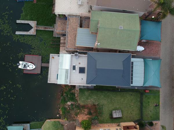 Waterfront Double Storey Home. Escape to your own private retreat with this stunning 5 bedroom waterfront home, perfect for relaxing weekends or extended holidays. Nestled in a peaceful setting with breathtaking water views, this property offers the ideal blend of comfort, space and tranquility. Build in braai in the living room. Borehole water and water filter system for the whole house. Paloma Gas Geyser. Remote operated CC TV system. Remote operated heat pump for swimming pool. Covered parking for boat and jet ski, plus 4 cars. Block out on all the east side windows, as well as the master bedroom windows and outside door. The sliding doors in the play room can open up wide if you wanted to do so you could put tracks in the water and a 21 feet boat and jet ski, can fit in easily next to each other, for all your watersport enjoyment. Certain furniture pieces are available and can be discussed with interested buyers. Why wait, call today for viewing