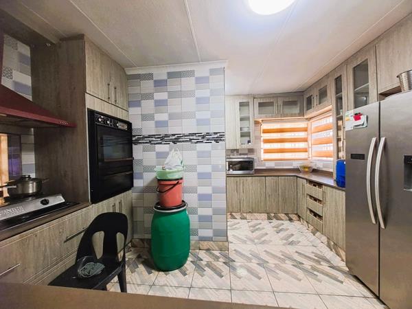 This spacious 5-bedroom home offers generous living with two en-suite bedrooms, built-in cupboards throughout, a full bathroom, and an additional guest toilet. The kitchen includes a scullery and flows into a large TV room and a formal lounge that can double as a dining room. An inviting entrance hall sets the tone for a warm, functional interior ideal for family life and entertaining.