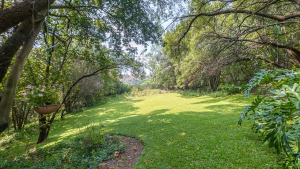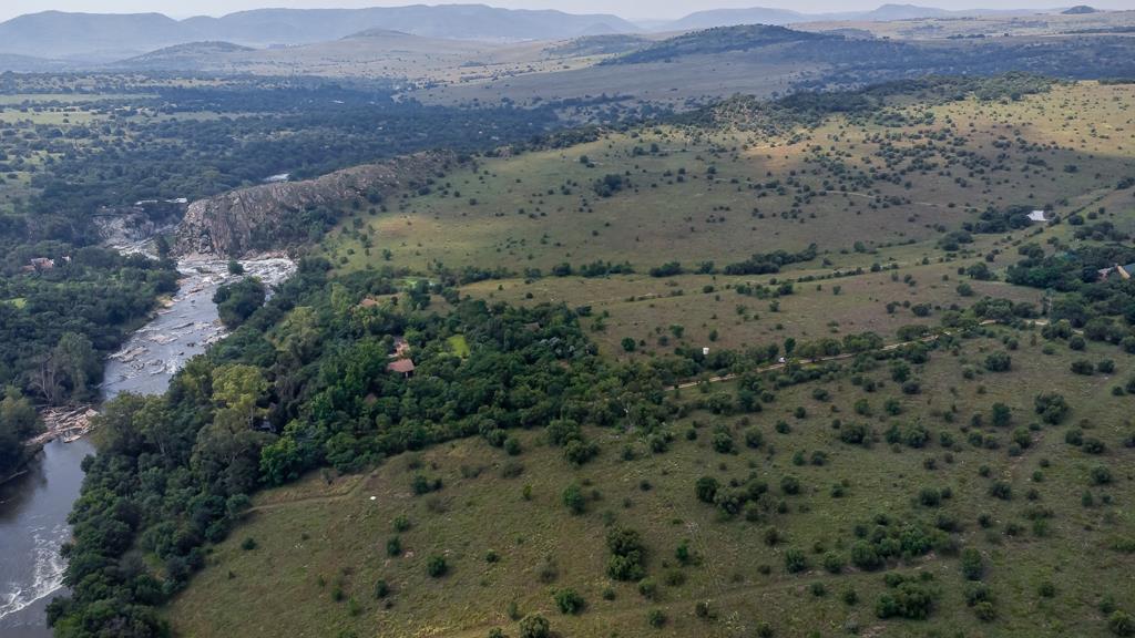 The perfect blend of country living, this beautiful home is designed to make the most of its picturesque surroundings. With Lanseria international Airport in proximity this property is ideally situated as an opportunity in tourism-driven investment. Entrance via wooden gates and stone wall, to fenced in area around the dwellings. Various ponds with streams on automated timer meander through the gardens. Leading one to the 3 garages with wooden auto doors. Pathway down to main house is picturesque with waterfall feature and koi ponds. Double pivot solid wooden door opens to the impressive entrance hall onto elegant lounge. Formal lounge has open fireplace and lovely views onto the surrounding garden, double doors open to the private dining room, which also leads directly to the kitchen. The house was crafted with love and has cottage pane wooden windows plus underfloor heating throughout. Open plan, specious Kitchen with breakfast area onto covered patio has separate walk-in pantry and underground cellar. Covered terrace overlooks the beautiful manicured gardens. The back kitchen door opens to another terrace with shade net. Wooden balustrade staircase leads upstairs to the TV lounge with double doors opening to the balcony. Well-sized master bedroom with 2 walk-in cupboards and an access onto balcony. Main bathroom en-suite with double vanity, shower and large ovel bath. Large 2nd bedroom with en-suite bathroom and double doors leading to balcony. Inviting swimming pool overlooking with thatch Lapa and outdoor facilities. There is a pathway leading from upper garden down to the river and to located on the river''s edge cottage. This is A-frame cottage with small kitchenette, lounge with fireplace and bathroom with shower. All cottages have patio, braai facility, fireplace and jacuzzi and are suitable for a small-scale B&B. Extra Features: All wooden work for windows, cabinets or staircase are crafted from African Teak -Iroko, sourced from Mozambique, Magnificent garden, irrigated from the river, Various ponds with koi, streams and water features on timer, throughout the garden, Strong borehole, 3 phase electricity, Extensive river frontage with large mature trees, Large Barn.