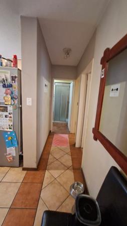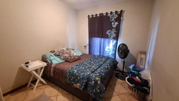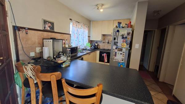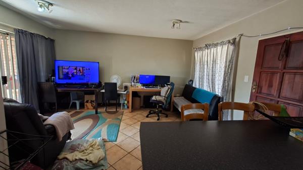 The residence is a ground-level townhouse featuring a private garden and is conveniently located within walking distance of a shopping centre. The unit comprises two bedrooms, one bathroom, an open-plan lounge, dining area, and kitchen. Additional amenities include a single garage, a gate allowing easy access to the complex, and a secure entrance.