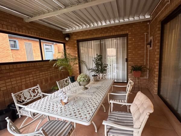 Single level, low maintenace townhouse in the very sought after Centurion Golf Estate. Spacious and cosy home situated close to the main entrance and the clubhouse.Ideal for residents who wants to scale down and spacious enough for any young family. The living areas and enclosed patio can easily accomodate a big group of visitors.