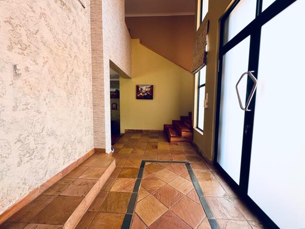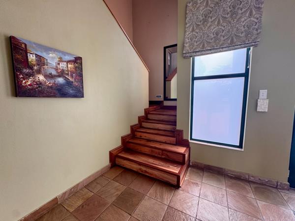 There are four sunny bedrooms in the home - two are downstairs and share a bathroom and the main bedroom and the fourth room are both upstairs and each have an en-suite bathroom. The main bedroom is very spacious and fitted with wonderful cupboards and spectacular bathroom as well as a fire place and opens out onto a balcony which overlooks the garden. There is a private jacuzzi room.