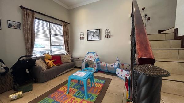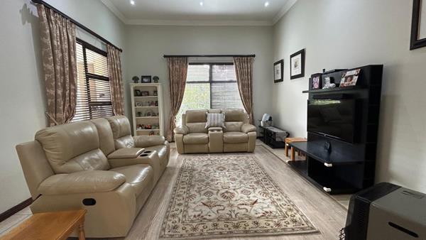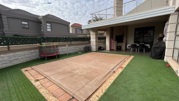 The living areas open out onto a sunny patio with built in braai and pool. The blind on the patio also automated for your convenience.