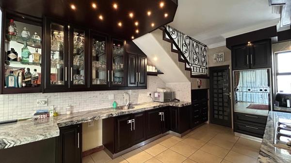 The living areas open out onto a sunny patio with built in braai and pool. The blind on the patio is also automated for your convenience.