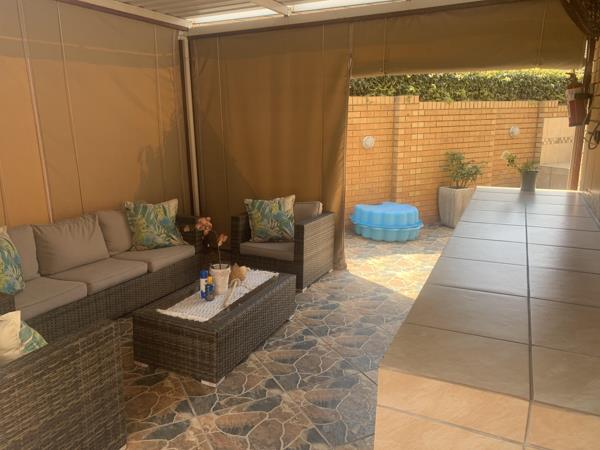 One of the highlights of this property is the enchanting patio that leads out to the back garden. Here, you''ll discover a lush patch of astro turf, perfect for your children to play on or for you to unwind on a sunny day. The lovely outdoor entertainment area promises endless opportunities for al fresco dining, barbecues, and gatherings under the clear South African skies.