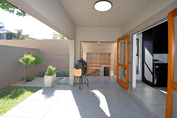 Tastefully, renovated property with the kitchen fitted with gas stove and ample cupboard space, opening seamless to the dining room and TV lounge. Double patio doors flow onto a spacious covered patio that overlooks the beautiful private garden. The home also has an outside built-in braai.