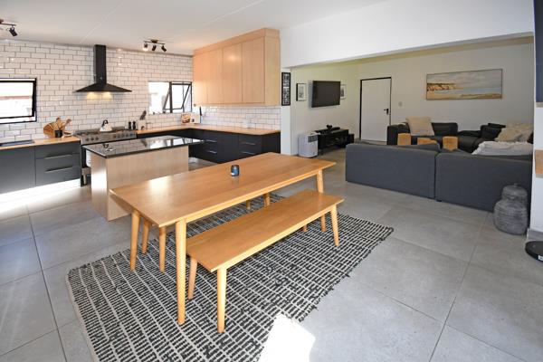 This tastefully, renovated kitchen fitted with gas stove offers ample cupboard space and opens seamless to the dining room and TV lounge. Double patio doors flow onto a spacious covered patio that overlooks the beautiful private garden. The home also has an outside built-in braai.