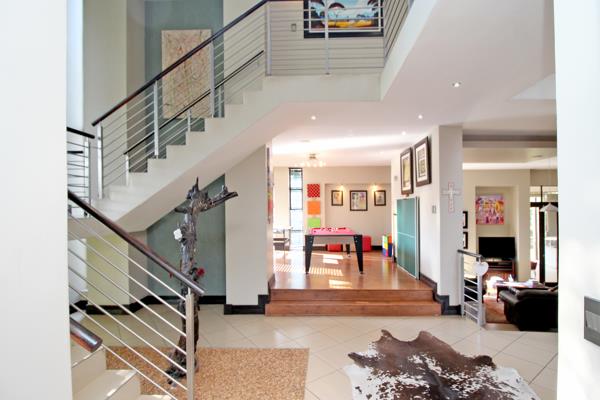 The home is built on a floating foundation, ensuring stability and modernity. Two geysers, one of which is solar-powered, provide energy-efficient living. For added convenience, there is a games room, office space with its own entrance, and servants'' quarters, ensuring privacy and versatility. The property is designed with double-volume ceilings, extra-high windows, and an abundance of natural light throughout.