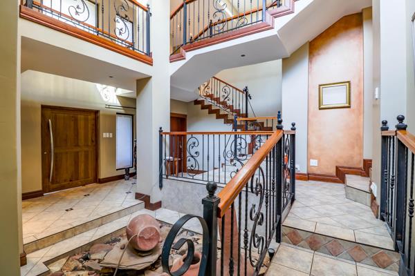 Elegant entrance hall with indoor fountain & sweeping staircase