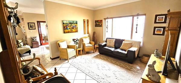 From here, glass doors invite you out onto the enclosed patio. Picture yourself hosting a lively dinner and the delicious aroma of the built-in braai filling the air. This patio flows to the low-maintenance garden.