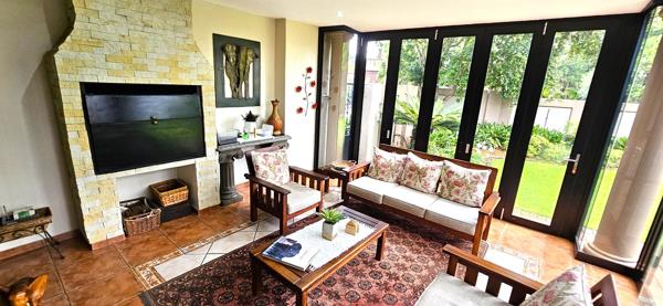 The distinguished dining room, warmed by a charming wood fireplace, flows effortlessly into the magnificent entertainment roomthe true heart of the home. This space features sophisticated aluminium and glass folding doors that merge the interior with the serenity of the landscaped garden.