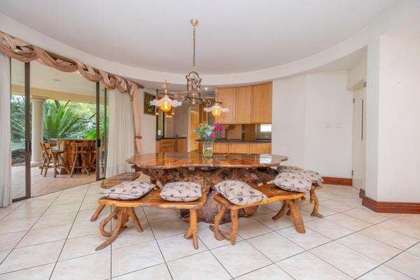 This 4 bed, 3 bath double story home offers families so much, with 2 of the bedrooms upstairs, both en-suite and a further 2 downstairs sharing a full bathroom, older kids or parents can have their own privacy. The modern chef''s kitchen is a focal point, being open plan to the dining and outside veranda via stacking windows. This is an entertainer''s dream. There is a separate scullery and plenty of cupboard space. The home has a lift for all kinds of convenience, a sauna, jacuzzi and deep swimming pool all in the centre courtyard of the magnificent property. So much thought and imagination went into the spaces and flow when designing the home, you need to come and walk it to experience it. The tropical garden is incredibly landscaped to offer beauty and privacy from the passing golfers. There is staff accommodation and water features all over the property, giving a sense of tranquillity second to none.
