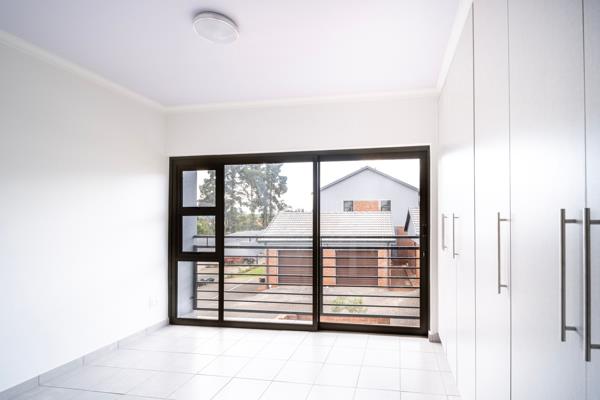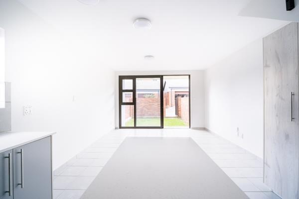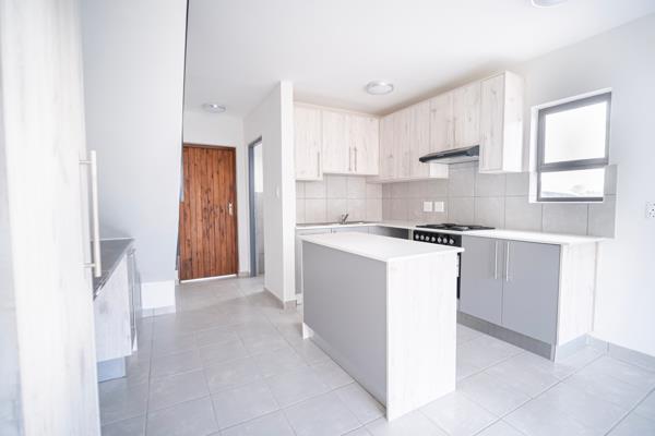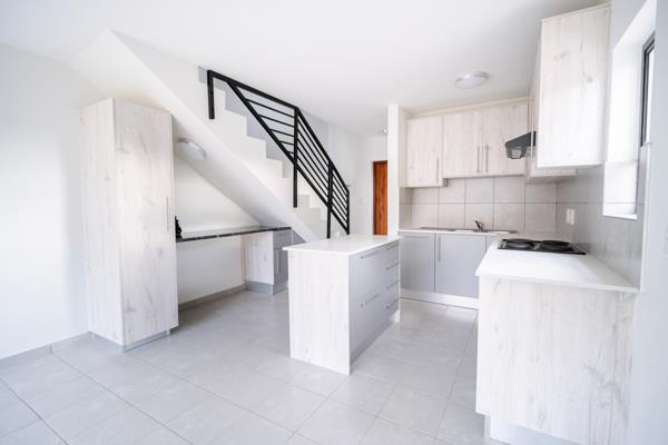 This stylish duplex offers modern finishes, ample natural light, and a functional layout designed for comfortable everyday living. The open-plan lounge and kitchen connect seamlessly, creating a warm and engaging living environment. A built-in workstation nook beneath the staircase adds valuable versatility for study, work, or additional appliance space. Large windows and glass doors enhance brightness throughout, while the private back garden offers an inviting outdoor area for relaxation and light entertaining. The upper level features two bedrooms, each fitted with generous built-in cupboards. The main bedroom includes an en-suite bathroom with a modern shower and basin, while the second upstairs bathroom provides convenience for shared living arrangements. A guest toilet is positioned downstairs for added comfort when entertaining or accommodating visitors. Parking facilities include two covered carports, with additional visitor parking within the estate. Solar geysers promote energy efficiency and cost savings, while the low-maintenance exterior adds long-term value. Residents enjoy access to thoughtfully designed communal outdoor areas, beautifully landscaped gardens, and peaceful walking paths. Its location provides quick and convenient access to major freeways, well-known shopping centres, good schools, and quality medical facilities, ensuring both lifestyle appeal and everyday convenience.