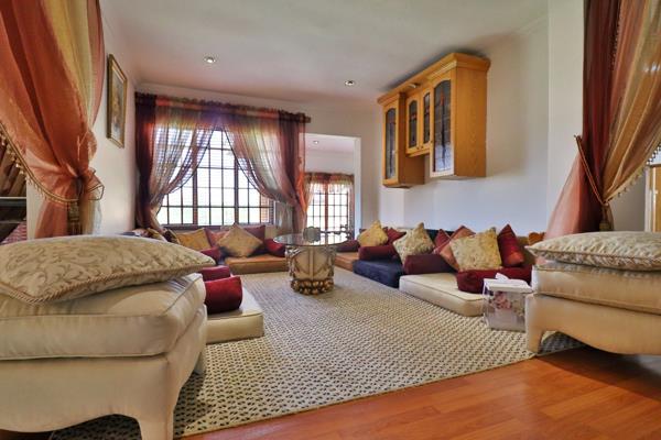 It is a home for a large family that loves space, entertaining, swimming, tennis, just to mention a few features. As you enter the house you have a view onto a large built-in bar and underroof pool area of 299m2. There are 6 bedrooms of which two have en-suite bathrooms. Two bedrooms are sharing a bathroom and both bedrooms have doors leading to the front garden area. The third bedroom has an en-suite bathroom consisting of a shower, basin and toilet. There is ample storage and a study nook, private lounge and door leading to the garden. The fourth, fifth and sixth bedrooms share a bathroom with a shower, basin and toilet. The six bedroom has a view over the childrens play area that has a jungle gym. There is a gym room that can alternatively be utilised as a private lounge, pyjama lounge or study. The master bedroom is separate with ample cupboards (walk-in closet) and has a sizable bathroom with shower, basin and toilet. From the master bedroom is a door leading to the pool area.