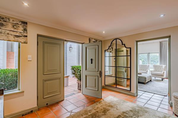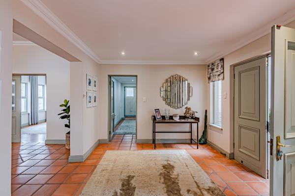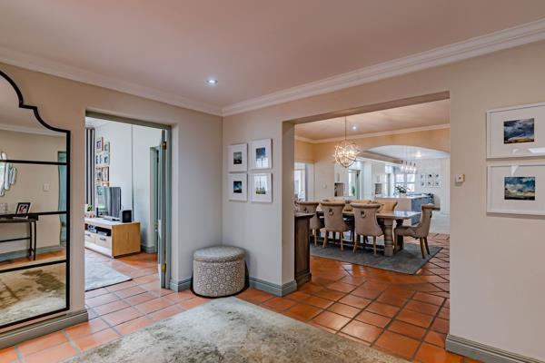 A warm welcome awaits you from the entrance doors which are flanked by 2 double garages and ample parking space for visitors. An impressive featured staircase leads to the front doors. Here you find a small walking passage left and right which on the left leads to the bar/entertainment area with easy access to the pool and house. On the right you find a seperate room ideally suited for a boardroom/entertainment room adjacent to the boma area.