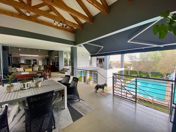 Designed to embrace natural light and beautiful surroundings, the home features expansive aluminium windows and glass stack-away doors, creating seamless indoor-outdoor living. Elegant fireplaces in the reception areas add warmth and character, making the living spaces inviting throughout the seasons.