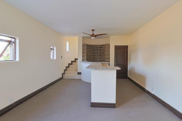 This spacious property features 4 bedrooms, each with its own en-suite bathroom and walk-in closets. The open-plan design allows for plenty of natural light. Downstairs boasts a large kitchen, study, guest bedroom, diningliving area with fireplace, and a covered patio with a pizza oven. Additional highlights include a built-in bar, sliding doors to the backyard, and a flatlet above the garage.