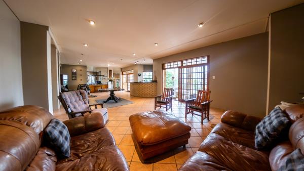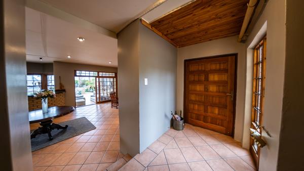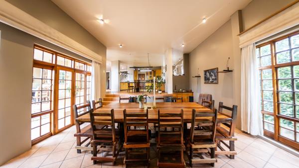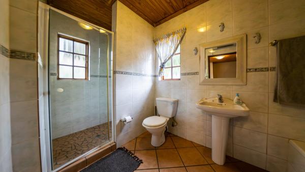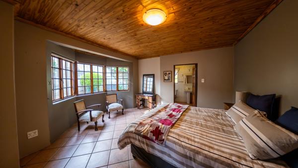 This level offers access to the flatlet and features two spacious living areas. One serves as a TVfamily room conveniently located near the bedrooms, each fitted with built-in cupboards and their own private bathrooms. The larger living area boasts a wood-burning fireplace, while the smaller lounge offers flexibility, ideal as an open-plan gym or relaxation area.