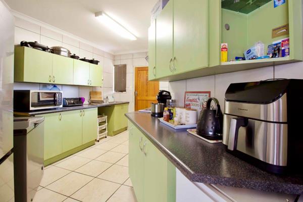 The lounge area is open plan to the kitchen, with ample cupboard space.
