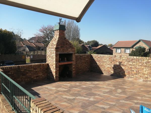 Well maintained 2 bedroom, 2 bathroom unit for sale on the first floor in Die Hoewes. Open plan living and dining room leads to a large patio with build in braai to entertain friends and family and also space the kids to play. The kitchen has space for one under counted appliance and has a breakfast nook. The main bedroom is equip with en-suite bathroom. Throughout the whole unit is floor tiles. Communal pool in complex. Complex is close to Unitas Hospital, shopping malls, schools and easy access to highways. Please note: Only dogs allowed in the complex with approval of the trustees.