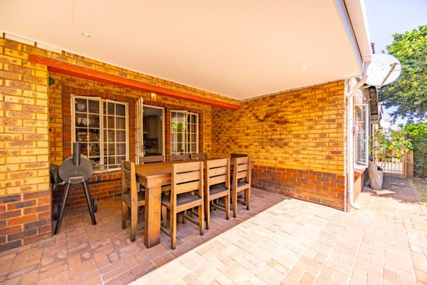 Externally, the property benefits from a private patio and a garden area, ideal for outdoor relaxation and entertaining. Paving enhances accessibility and aesthetic appeal. The inclusion of two garages and two additional parking spaces provides ample secure parking for multiple vehicles. This pet-friendly residence is located within a security complex, offering enhanced peace of mind, further augmented by installed burglar bars.