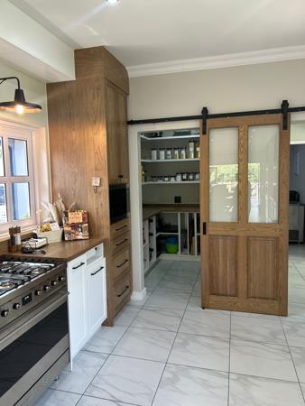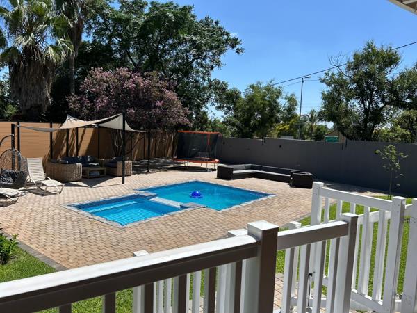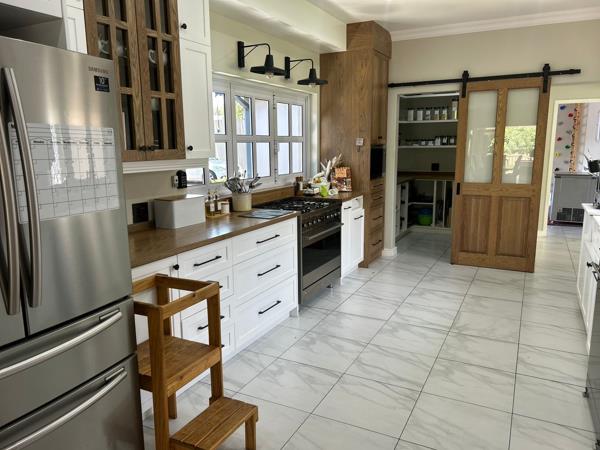 The heart of the home is an expansive open-plan layout that seamlessly combines a gourmet kitchencomplete with an indoor braai, bespoke cabinetrywith a chic bar, dining area and inviting lounge. Six high-efficiency air-conditioners ensure year-round comfort, while the adjacent childrens playroom offers a dedicated haven for little ones. Three designer bathrooms, a well-appointed laundry room round out the interior, alongside a double garage fitted with extra storage.