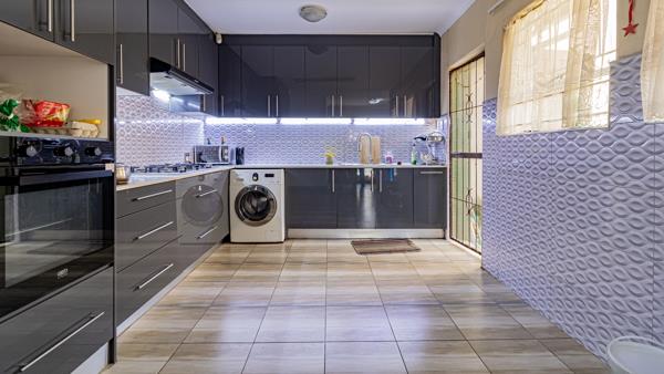 Upon entering, you''re greeted by a welcoming entrance hall that leads to a tiled dining area seamlessly flowing into a brand-new, open-plan kitchen. Fully renovated with sleek modern finishes, the kitchen features ample built-in cupboards, space for a single fridge, washing machine, and dishwasher, as well as a double sink. A five-burner gas hob and an energy-efficient electric geyser with timer add functionality and flair.