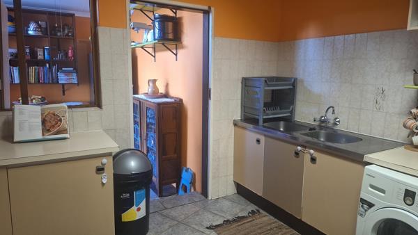Turning left into the passage, youll find a well-equipped kitchen with ample cupboard space and room for two appliances, which leads into a separate scullery for added convenience. Just down the passage is a full bathroom featuring a bathtub, shower, basin, and toilet.