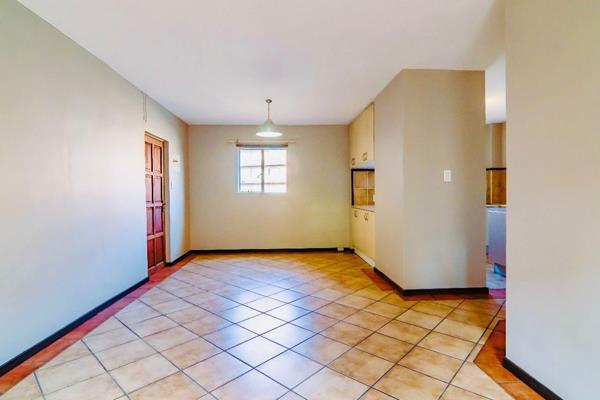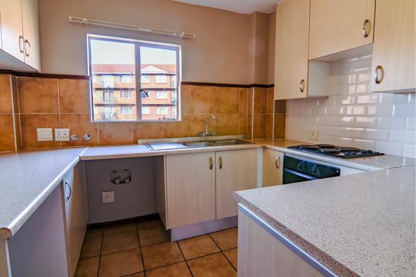 The modern kitchen has space for two appliances in addition to the space for the fridge. Extras include a double garage and access to braai facilities within the secure complex that has 247 security.