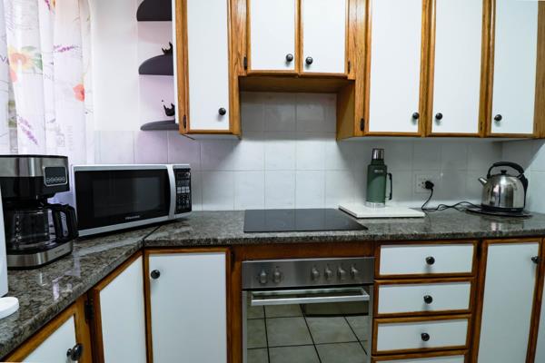 The townhouse offers a well-maintained garden, and a communal pool and lapa in the complex. Normally no load shedding! Unfortunately, no pets allowed.