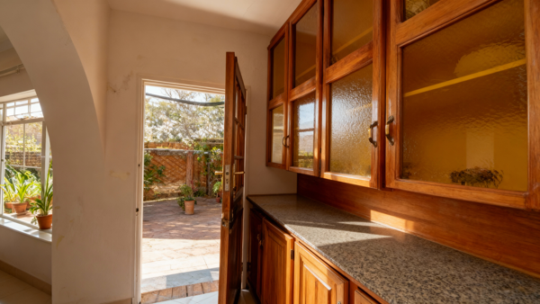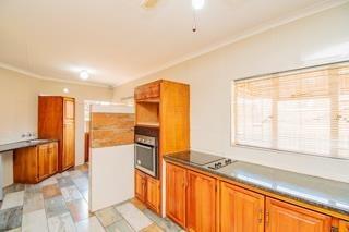 This charming 3-bedroom, 2-bathroom residential property, situated in a peaceful cul-de-sac in Die Hoewes, offers a comfortable family living experience. The durable brick exterior, complemented by a paved driveway and secure gated entrance, provides excellent kerb appeal. A unique thatch-roofed structure, possibly a lapa or carport, adds character and outdoor utility, while established plants enhance the frontage.