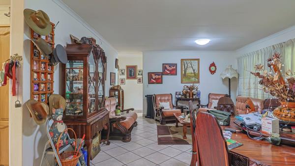 This inviting home offers 2 well-sized bedrooms, a full bathroom, and the convenience of a separate guest toilet. The original garage has been thoughtfully converted into an additional lounge, creating a wonderfully versatile living space. The home is tiled throughout, making it easy to maintain and cool in warmer months.