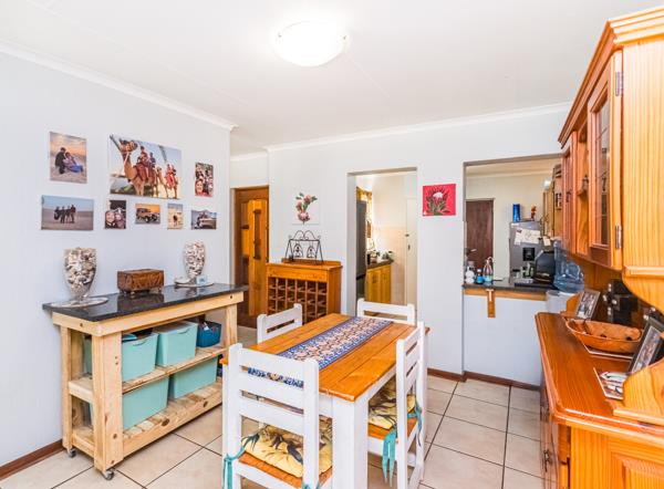 This charming lock-up-and-go home is the perfect find. Beyond the entrance gate, a double carport in front of the double garage leads you to the front door. Inside, the home features two comfortable living areas fitted with ceiling fans. One of the lounges opens through sliding doors onto a covered entertainment patio with a louvre roof, overlooking the pet-friendly garden. A separate dining room connects the two living spaces. The kitchen offers granite countertops, ample cupboard space, a separate scullery, and an oven with a gas hob.