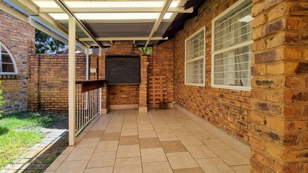 The living area opens onto a delightful private patio featuring a built-in braai and bar counter, creating the perfect setting for entertaining family and friends or enjoying relaxed evenings at home. From here, step into your own private garden a peaceful outdoor space made even more convenient by the double garage with direct access into the home.