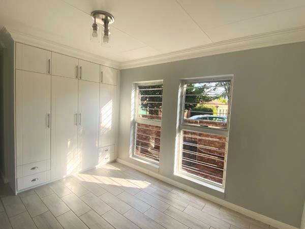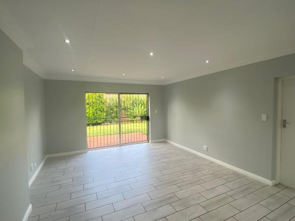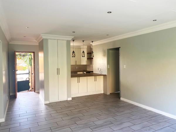 The sun-drenched open-plan living area with a stunning kitchen which offers ample cupboard space NEW CUPBOARDS and space for 2 undercounter appliances, a breakfast island and gas top, making it both functional and stylish.