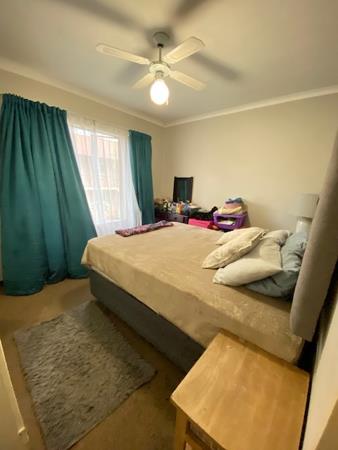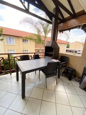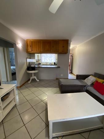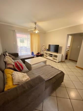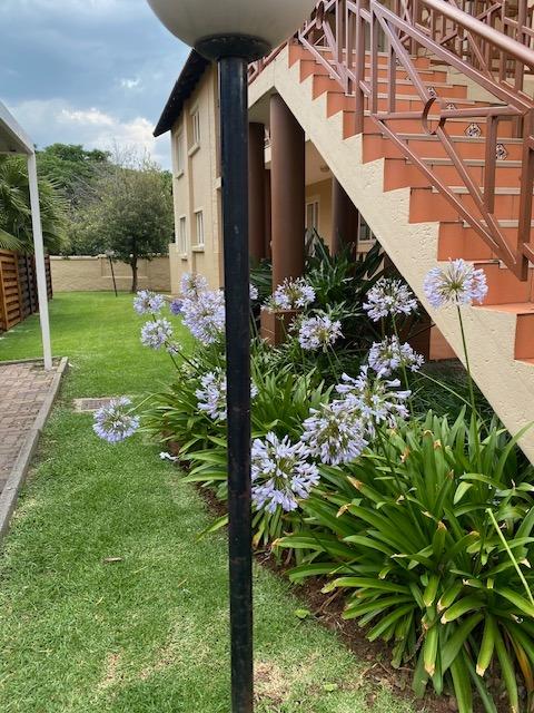 This inviting 2-bedroom, 1-bathroom residence is located in a secure complex in Die Hoewes, Centurion, boasting a well-maintained garden. The property offers excellent kerb appeal with its manicured lawn and blooming agapanthus.