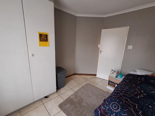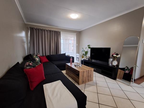 Spanning 97 sqm, this apartment offers a comfortable and functional living experience. The spacious lounge and dining room feature durable tiled flooring and neutral wall colours, providing a versatile backdrop for any decor. Natural light fills the living areas through large windows and sliding doors, some equipped with security gates for added peace of mind. An open-plan design ensures a seamless flow between the living spaces, complemented by a functional kitchen.