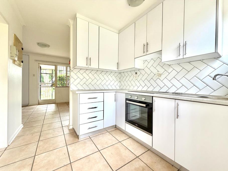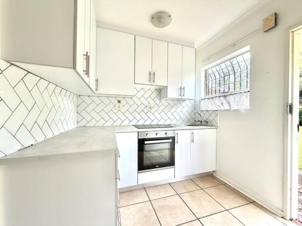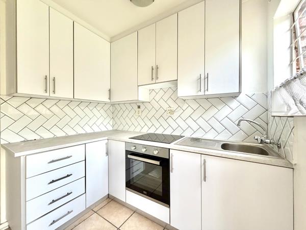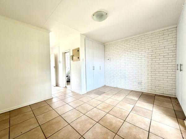 The apartment features a spacious bedroom with built-in cupboards, a well-appointed bathroom, and an open-plan living area that flows seamlessly into a neat kitchen. Natural light fills the space, creating a warm and inviting atmosphere throughout.