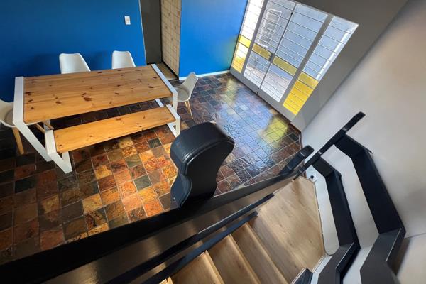 A beautiful wooden staircase leads to an upper level with wooden flooring, adding warmth and character to the home. The property also features a double automated garage for secure parking and a dedicated geyser serving the main house.