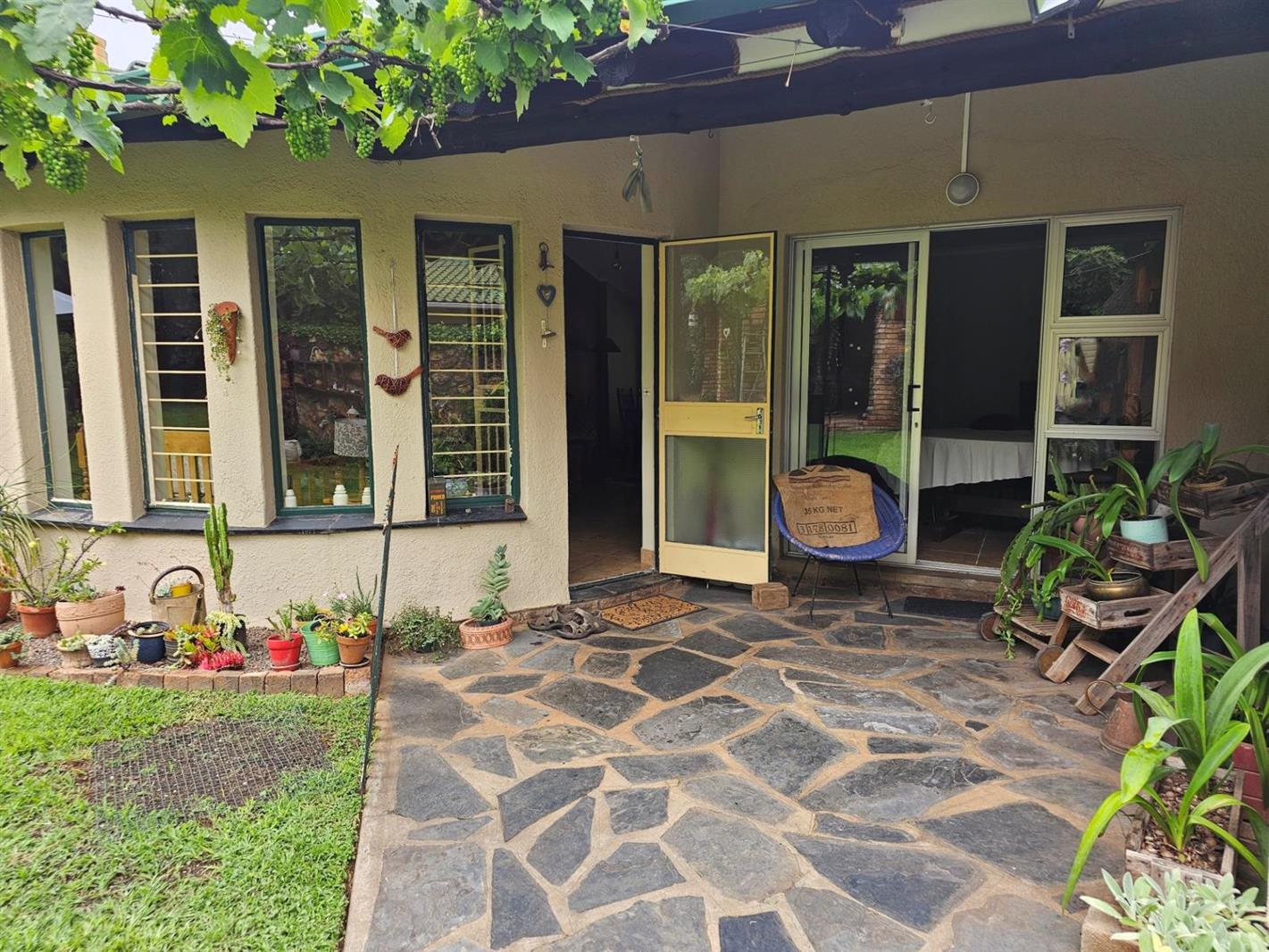 Off to the side, theres a versatile room that works beautifully as a guest bedroom or home office. A second living area/ or an alternative as an office, spills out through sliding doors into a lush, tree-filled garden the kind of garden thats clearly been tended with pride, complete with mature trees, grapevines, a chicken coop , and a veggie patch tucked behind the fence. A big attraction here is also the entertainment area - spacious, open sided, zinc roof with a reed ceiling, provinding insulation, a built - in braai and a boma - setting the scene for memorable evenings with friends and family.