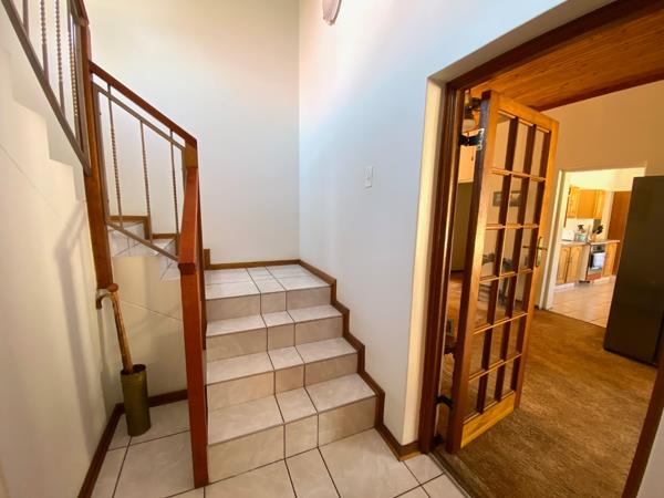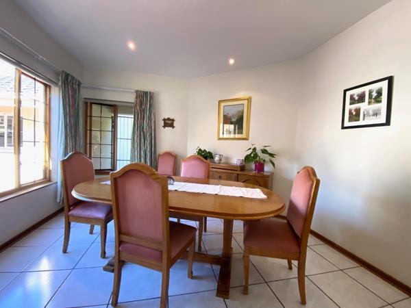 This substantial property in Doringkloof presents excellent kerb appeal with its attractive two-story architecture, featuring prominent bay windows and a freshly painted, light-colored facade. A paved driveway leads to a secure gated entrance, offering ample parking with a double garage and additional space for four vehicles. The well-maintained gardens, adorned with mature trees, enhance the property''s inviting exterior, creating a serene suburban setting on a generous 991 sqm erf.