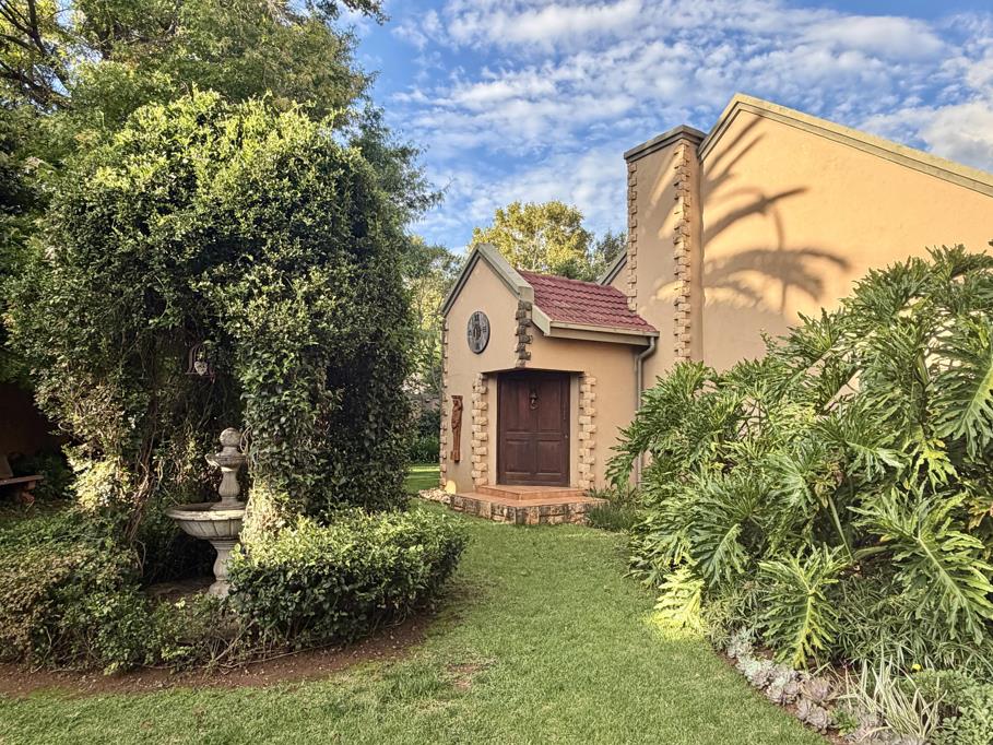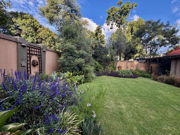Outside this beautiful Doringkloof home, a leafy patio leads to a garden office and external toilet, then out to a big back garden with a covered swimming pool. A largerthanusual garage rounds out the home.