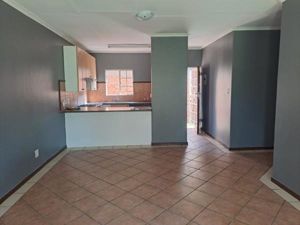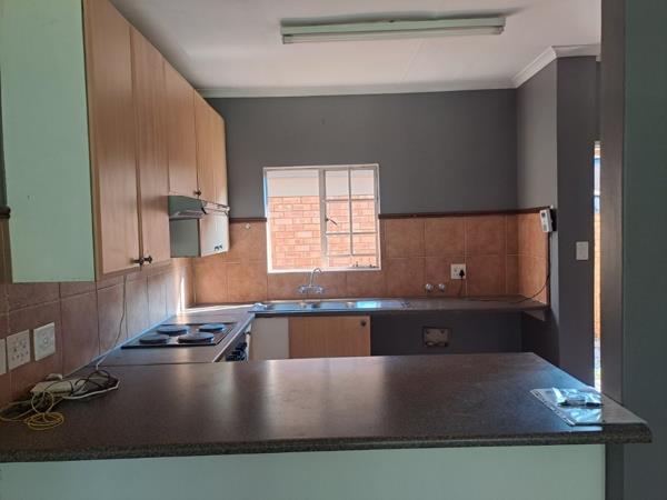 This stunning simplex single story, no one above is waiting just for you ! 2 well-sized bedrooms, 2 bathrooms one with bath, en-suite with shower and 2 garages. Kitchen is open plan with the lounge and dining room there are 2 water points viz. 2 appliances in the kitchen. Covered patio extended and big garden. Beautiful interior with walls painted grey both bathrooms are painted white. Pet friendly complex 2 small pets with body corporate written approval. Burglar proofing on all the windows. New light fittings. Fibre ready. Start packing and make the smart move. This unit will tick all your boxes. Serious Seller priced to sell !
