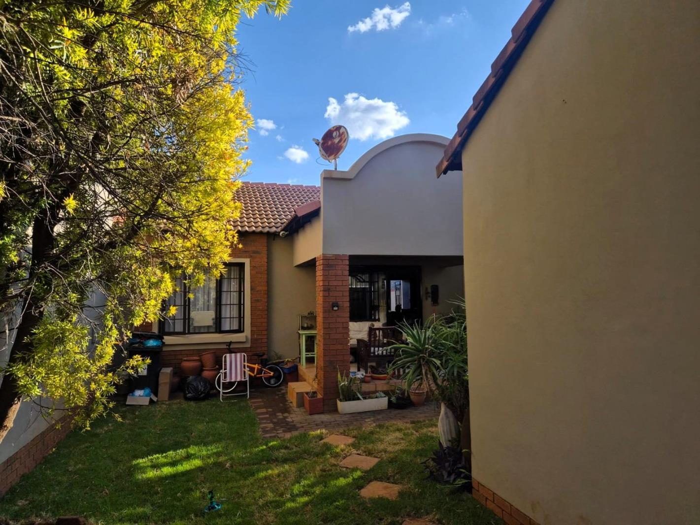 Garden area at the front and back of the unit. The unit has a gate at the back giving you easy access to the green area between two complexes but still forms part of Eco Park Estate