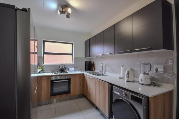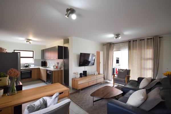 The generously sized living areas flow effortlessly onto a private balcony that includes a built-in gas braai and showcases stunning views of Centurion, creating the perfect space for entertaining or relaxing.