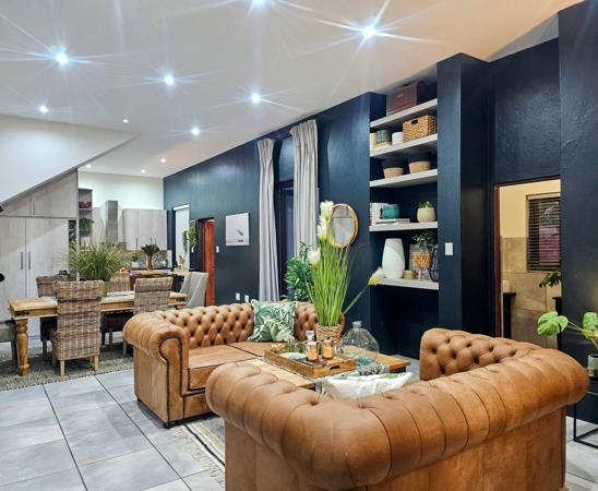 Ground Floor Living and Entertaining Upon entering, you''ll be greeted by your private staircase, leading to a spacious entertainment area complete with a built-in braai, ideal for hosting friends and family. Inside, the open-plan living areas flow seamlessly, offering a guest cloakroom and a modern kitchen with a breakfast nook. The kitchen is equipped with a gas hob, under-counter oven, and a separate scullery for added convenience.