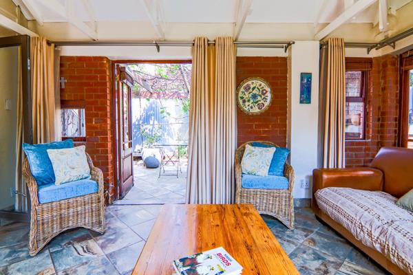Step through the front door and you are immediately embraced by sunlight streaming into open living spaces. High ceilings with exposed beams lend a sense of airiness, while the crackle of the wood-burning fireplace promises evenings wrapped in warmth. Doors open wide to invite the outdoors in on one side, the shimmer of the swimming pool catches the afternoon light, while on the other, a little stoep draped in grapevines whispers of long summer lunches and evenings under the stars.